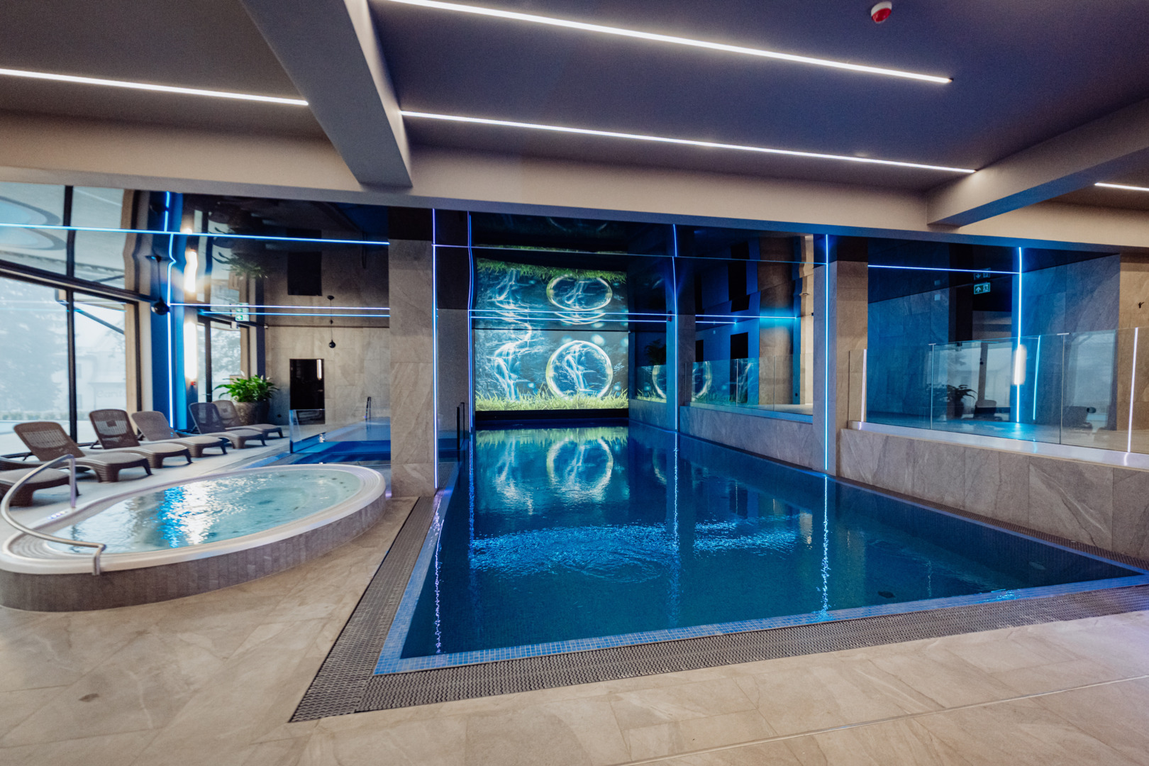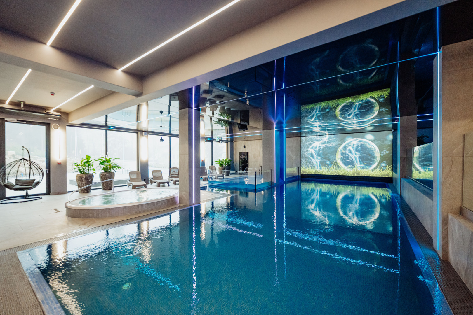 Nová bazénová zóna v rezidenci AQUA by GRANO je prostor určený k relaxaci a regeneraci všech našich hostů. Bazén se nachází v samostatné budově, přístupný přes venkovní nádvoří. Obě zařízení nejsou propojena vnitřní chodbou.