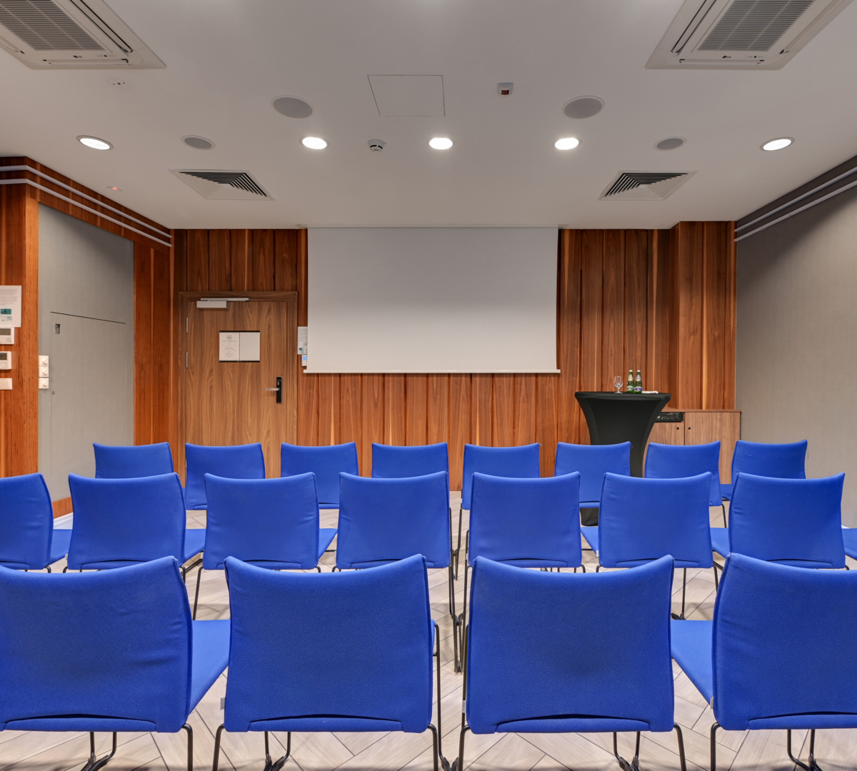 Dieser gemütliche Konferenzraum eignet sich perfekt für Geschäftstreffen und kleinere Veranstaltungen. Ausgestattet mit Klimaanlage, WLAN, Leinwand, Beamer und Soundsystem mit drahtlosen Mikrofonen bietet er Platz für bis zu 35 Personen und ist lichtdurchflutet. Bei Bedarf kann er vollständig abgedunkelt werden.