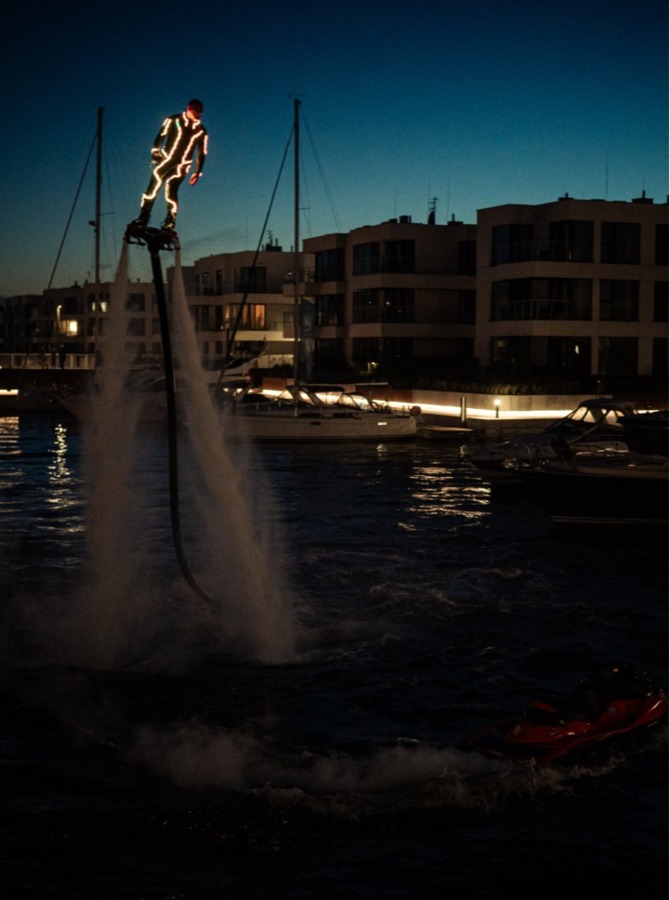 Get ready for a spectacular show! Flyboard is a combination of the power of water and human abilities – dynamic take-offs, impressive spins, and acrobatics several meters above the water. This cannot be described – it must be seen live!