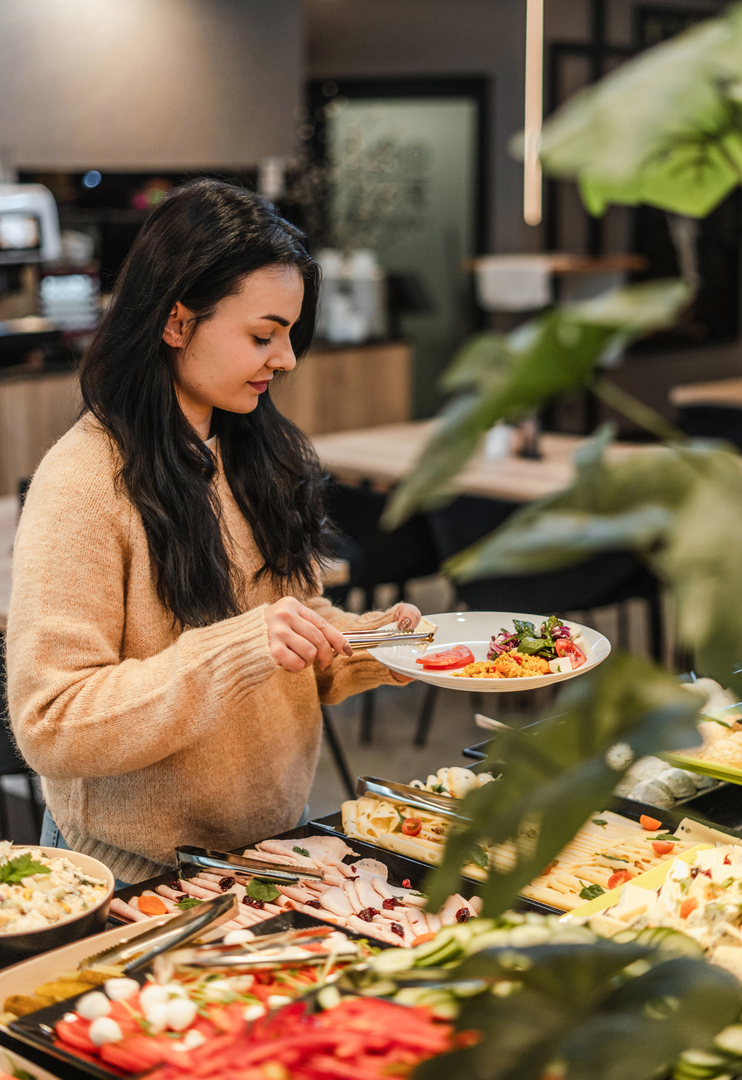 For buffet dinners, there is a wide selection of soups, main dishes, salads, and desserts waiting for you, allowing you to find something delicious every day. The served dishes change depending on the season, so only the freshest seasonal products make it to the tables.