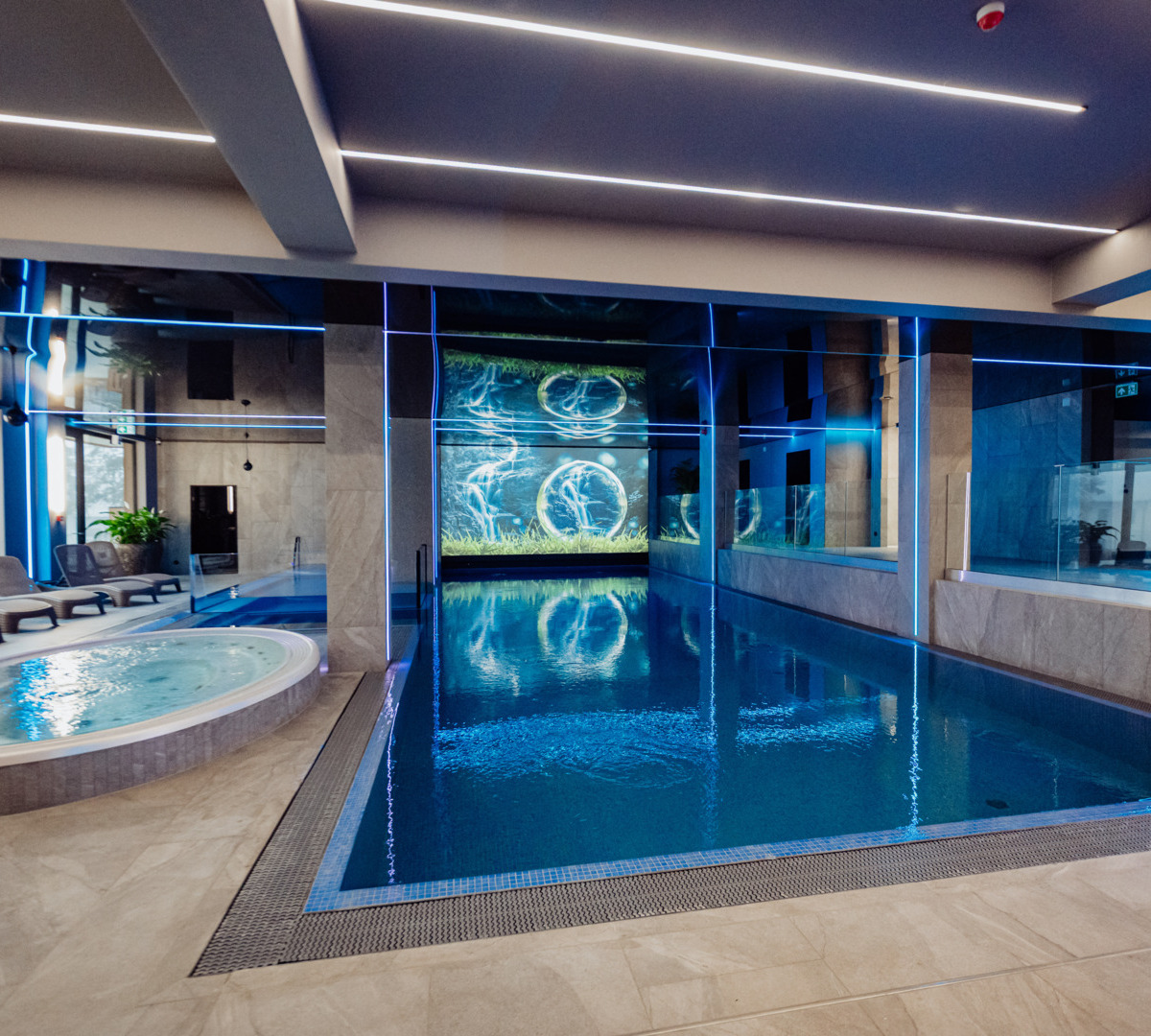 Vi inviterer deg til å besøke vårt innendørs bassengområde, designet for de som verdsetter aktiv rekreasjon. Bassenget er perfekt som en komplementær treningsøkt etter en dag med fotturer, mens avslapning i badstuen vil akselerere muskelrestitusjonen og forberede kroppen din på fremtidige sportsutfordringer. Det er det perfekte stedet å slappe av etter fotturer, ski eller en intens spasertur, samtidig som du fokuserer på din kondisjon og velvære. Bassengområdet ligger i en separat bygning, tilgjengelig via en utendørs gårdsplass. De to fasilitetene er ikke forbundet med en intern passasje.