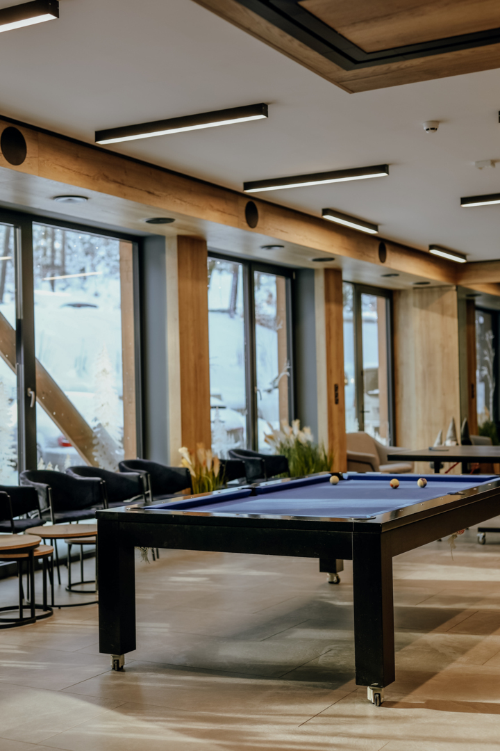 Po dniu pełnym górskich przygód i spacerów wśród karkonoskich krajobrazów, zapraszamy do naszej strefy aktywności – idealnego miejsca na popołudniowy relaks i wspólną zabawę. Na naszych najmłodszych gości czeka pełna atrakcji błękitna sala zabaw, a starsze dzieci, młodzież i dorosłych zapraszamy do skorzystania z siłowni, rozegrania mniej lub bardziej emocjonujących meczy na piłkarzykach, w bilard lub tenisa stołowego (tzw. ping ponga).