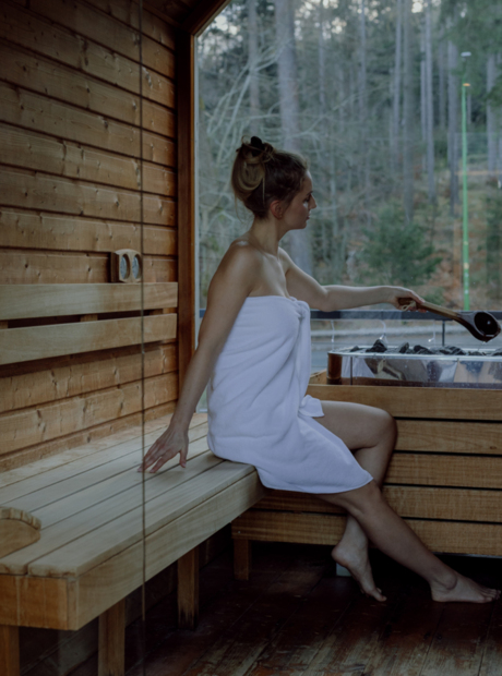 Goście Rezydencji AQUA by GRANO mogą korzystać z wyjątkowej strefy wellness na tarasie zewnętrznym, gdzie czeka na nich sauna oraz jacuzzi pod gołym niebem. To idealne miejsce na odprężenie po aktywnym dniu, niezależnie od pory roku.